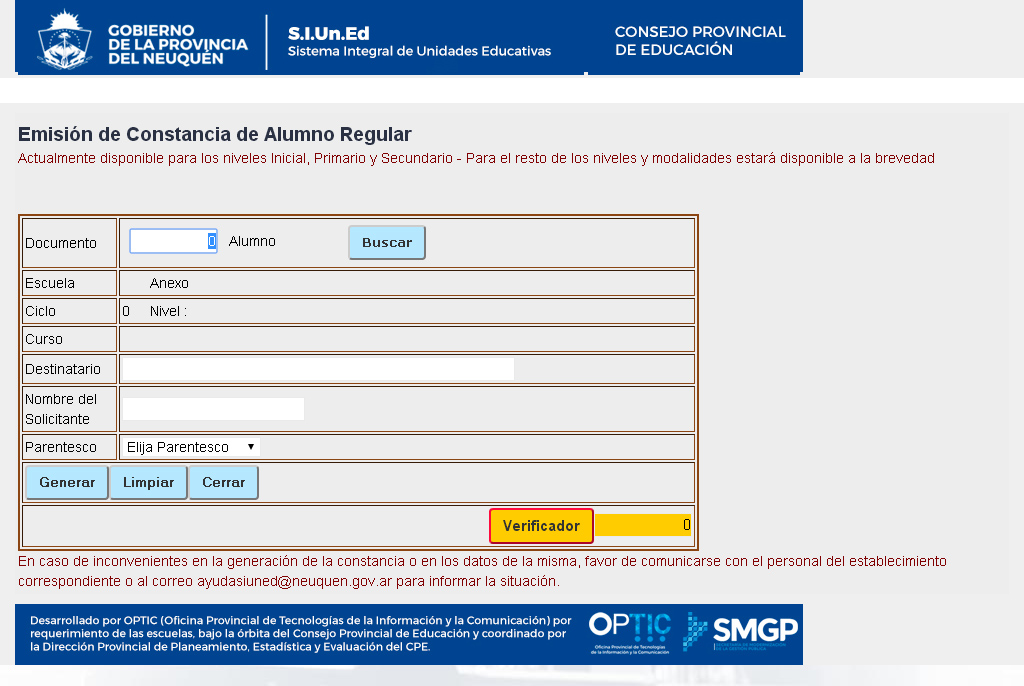 Esta herramienta fue desarrollada por un trabajo conjunto entre la dirección provincial de Estadística y Evaluación del CPE y la OPTIC, en el marco de la modernización del Estado provincial que colabora con la comunidad agilizando la realización de diferentes trámites. En este primer tramo, permite tramitar el certificado a las familias de las y los estudiantes de los niveles inicial, primario y secundario y de escuelas pertenecientes a la modalidad Educación Especial, pero se está trabajando para que en breve se efectivice para el resto de los establecimientos del sistema educativo neuquino.