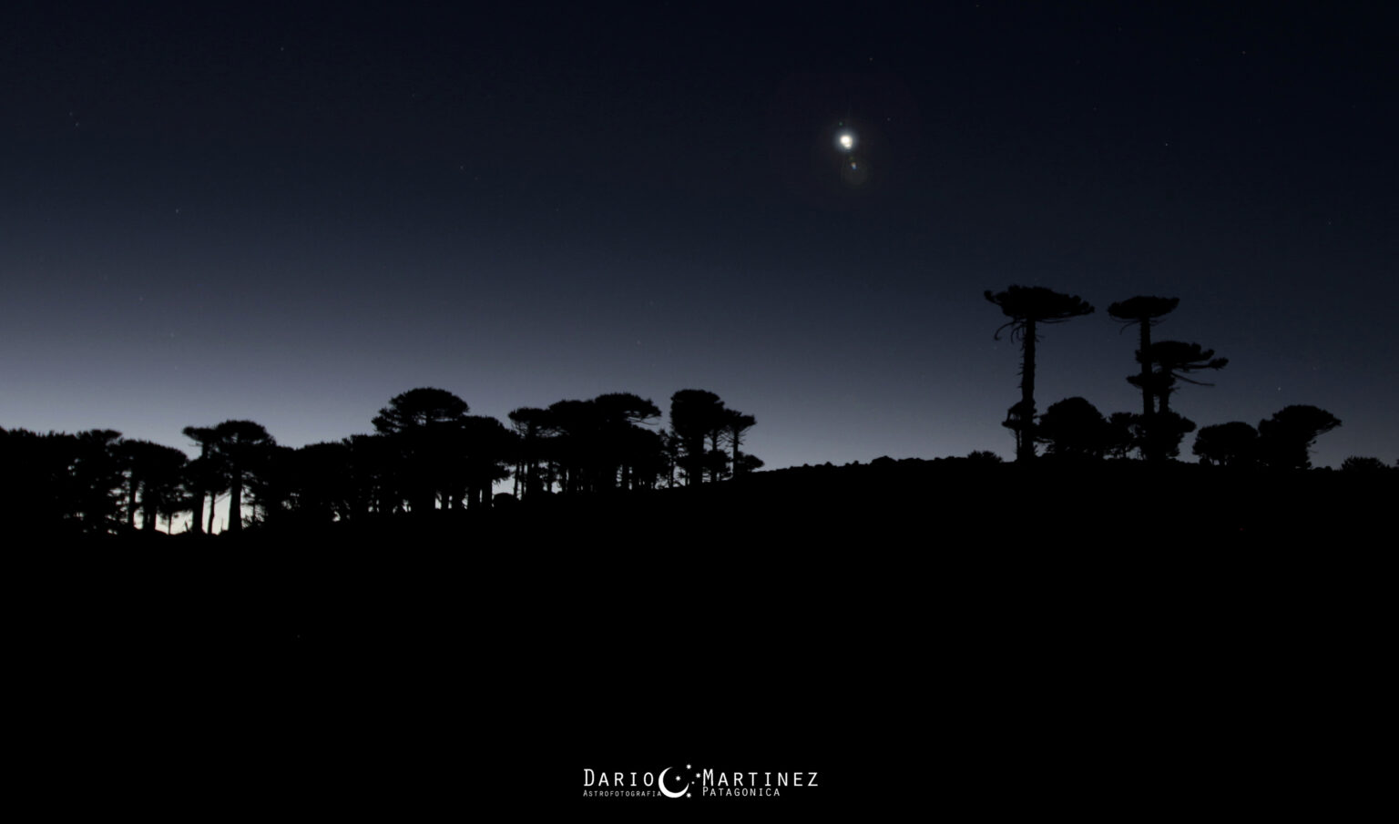 La conjunción de Júpiter con Saturno comenzó apreciarse luego de las 21:45 hs, con un cielo totalmente despejado, y sus colores característicos del atardecer cordillerano en tonos pasteles. Allí comenzó el espectáculo, casi justo por encima del horizonte, un punto radiante y luminoso comenzó a tomar protagonismo en un hermoso escenario cordillerano, y en contraluz las imponentes Araucarias que quedaron plasmadas en increíbles imágenes nocturnas.