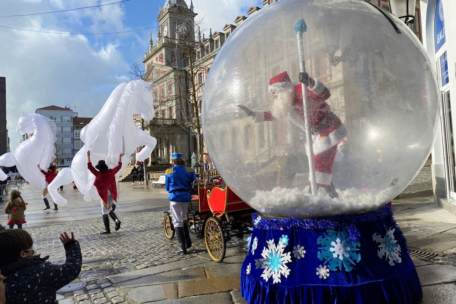 Un Papá Noel se proteje dentro en una bola de plástico para prevenir las infecciones del CoronavirusFuente: Reuters