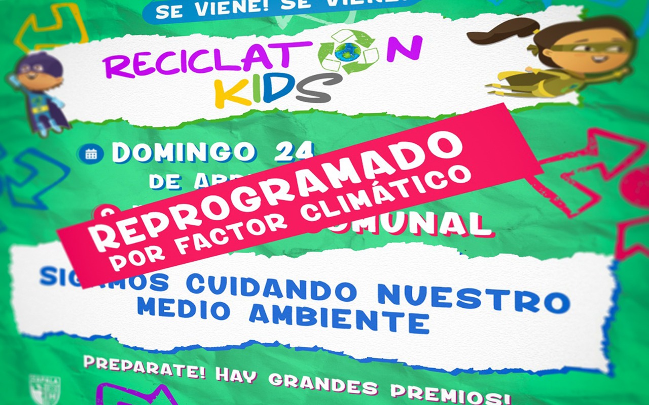 La Municipalidad de Zapala informa que la Reciclatón Kids, que se iba a realizar el próximo domingo 24 de abril, ha sido reprogramada por factores climáticos.