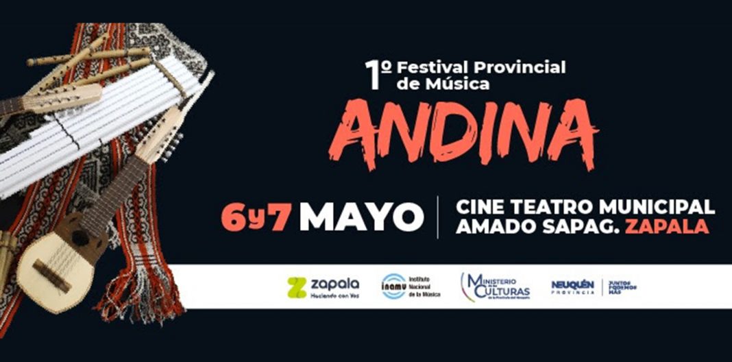 El ministerio de las Culturas invita a la comunidad al 1° Festival de Música Andina los días 6 y 7 de mayo. En este caso se trata de la primera edición en cogestión con la municipalidad de Zapala y se realizará en el cine teatro “Amado Sapag” Avenida San Martin 281, a las 21.30 con entrada libre y gratuita.