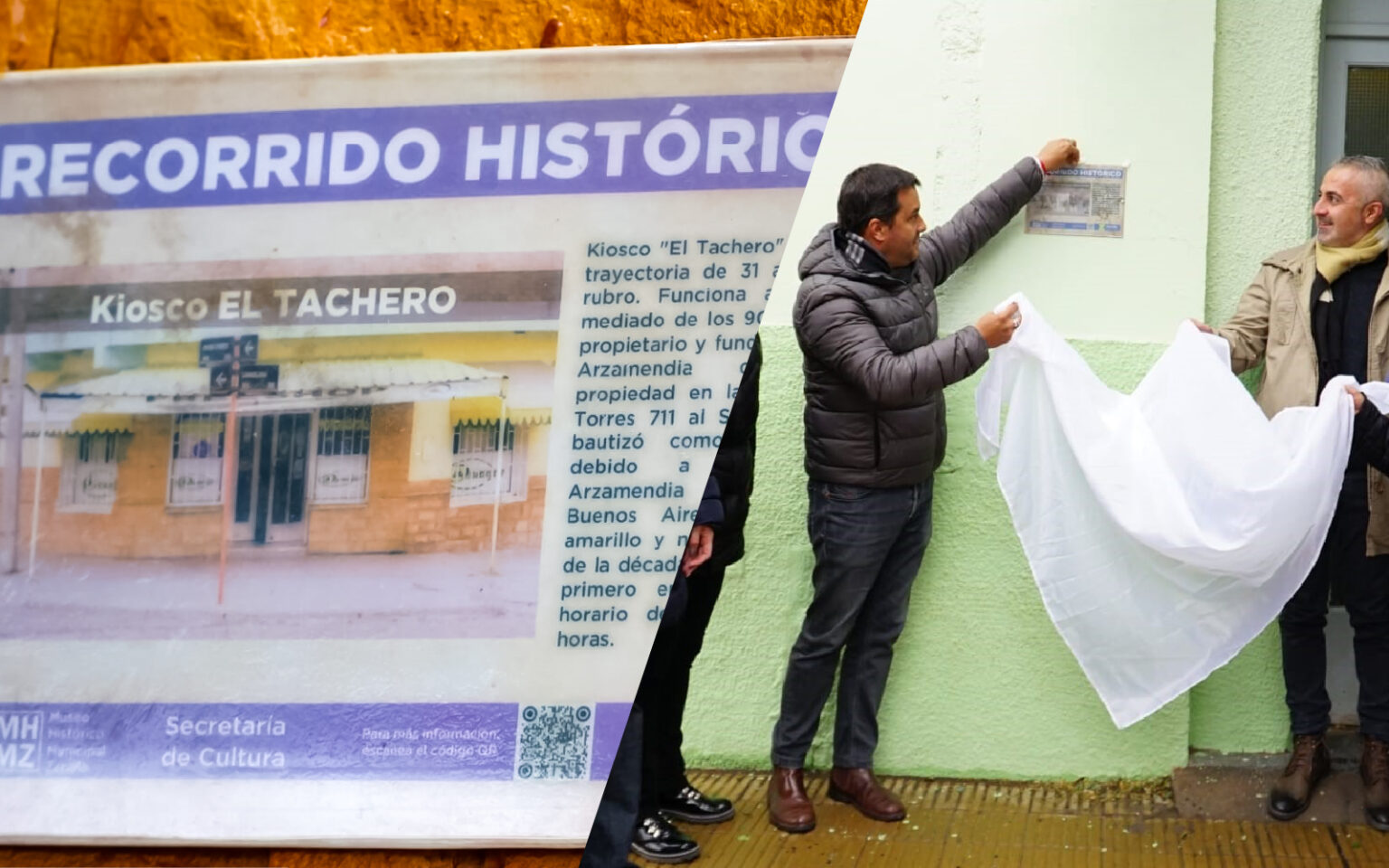 Como es habitual, se cumplió con el destape de nuevas placas en comercios, el cual contó con la presencia del Intendente Carlos Koopmann y la Secretaría de Cultura, María José Rodríguez.