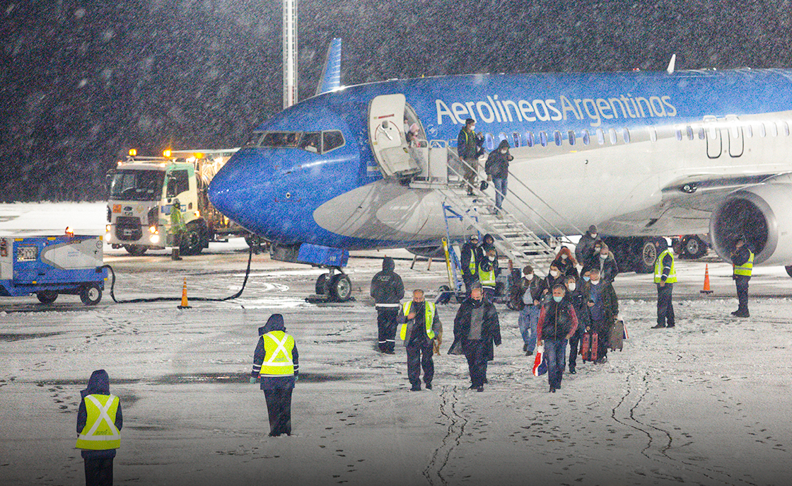 El avión, que llegó con pasaje completo, tocó la pista del aeropuerto Aviador Campos -también conocido como de Chapelco- a las 7:50. Los turistas fueron recibidos por el gobernador Omar Gutiérrez y por una copiosa nevada como presagio de otra temporada récord en la bella aldea de montaña. Luego hubo una conferencia de prensa en la que también participaron el presidente de Aerolíneas Argentinas, Pablo Ceriani; el intendente local, Carlos Saloniti y su par de Junín de los Andes, Carlos Corazini y el ministro de Turismo, Sandro Badilla, entre otras autoridades.