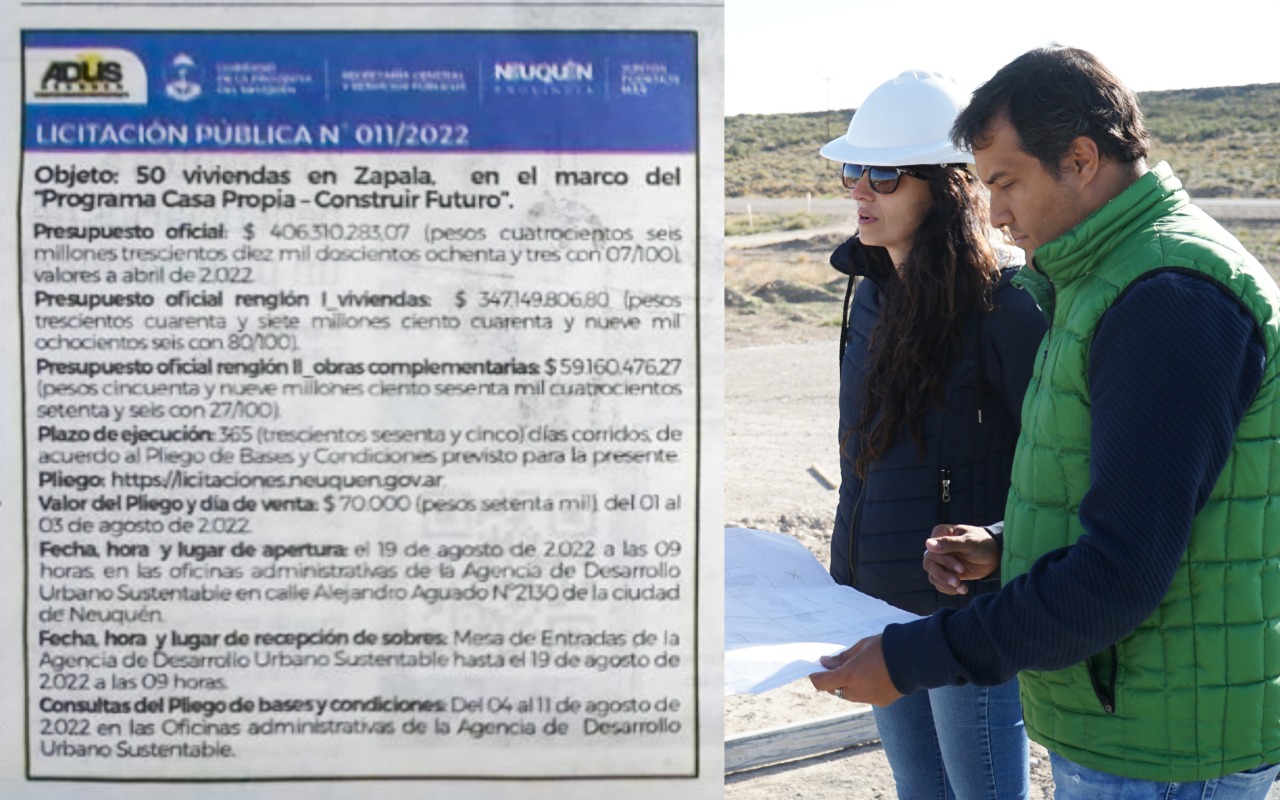 A través de licitación pública N°011/2022, se informan los presupuestos oficiales y plazos de ejecución para la concreción de 50 viviendas en nuestra ciudad, enmarcadas en el “Programa Casa Propia – se prevé concretar la ejecución de 50 viviendas en un plazo de 365 días corridos de acuerdo al pliego disponible en licitaciones.neuquen.gov.ar.