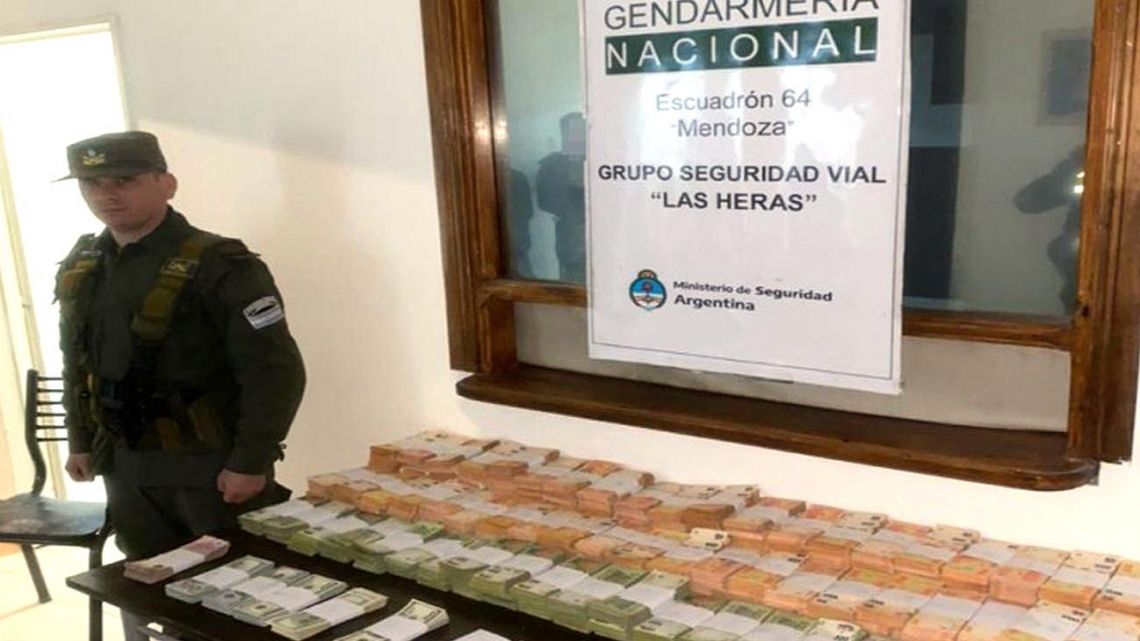 En el arranque del pasado fin de semana largo, efectivos de Gendarmería Nacional detuvieron en un control vehicular de rutina en Mendoza a un hombre que llevaba en su camioneta, escondidos debajo de un asiento y envueltos en una bolsa de nylon, 55.540 dólares, 4.600 euros, 300 reales y 24.351.600 pesos argentinos. Todas divisas sin justificación y sin declarar que, a cambio oficial, sumaban $33.654.385.