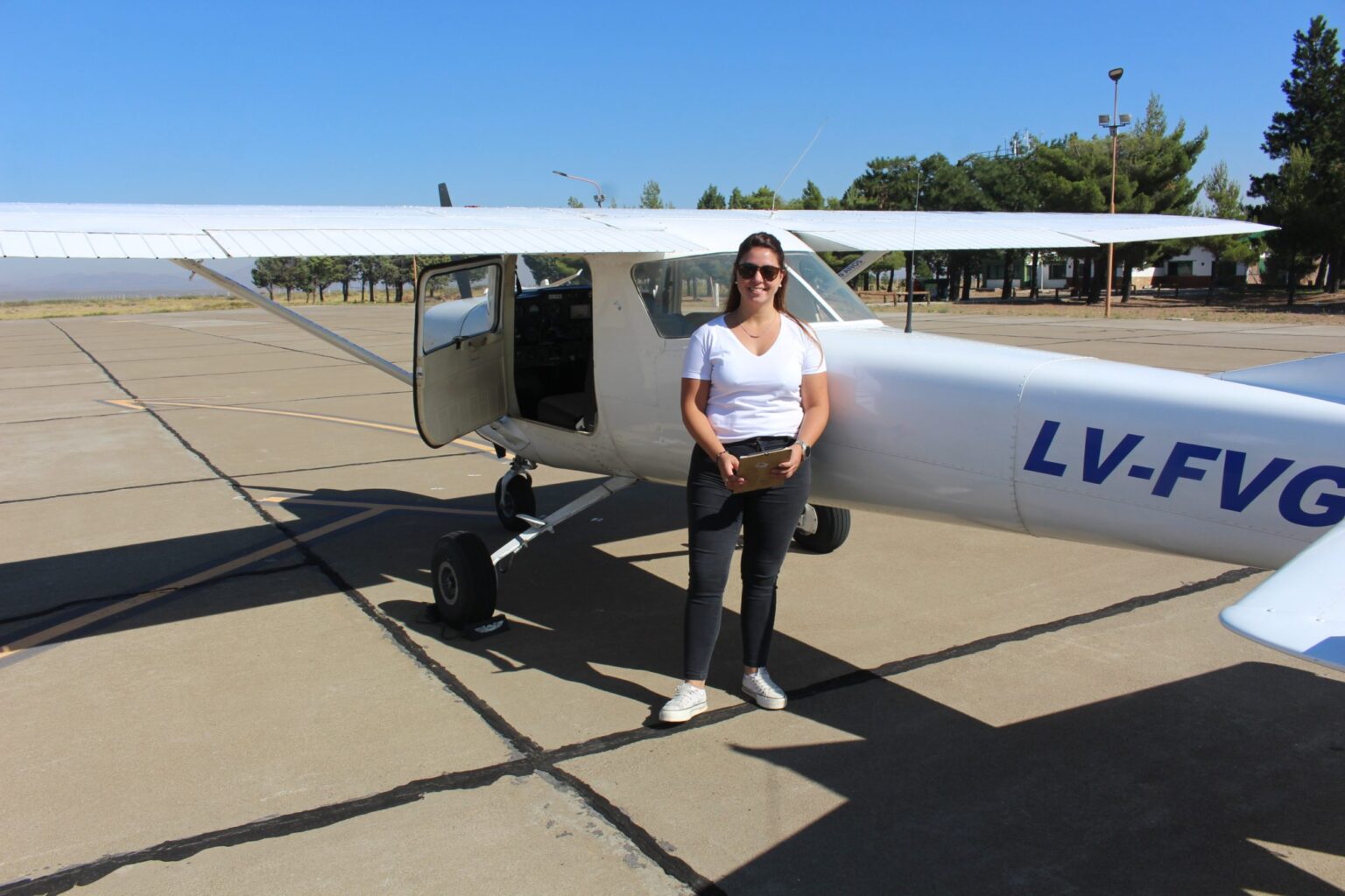 El otro dato histórico lo aportó la joven Leda Groppa, quien realizó su vuelo de instrucción como alumna piloto, convirtiéndose en la primera mujer aviadora de Zapala.