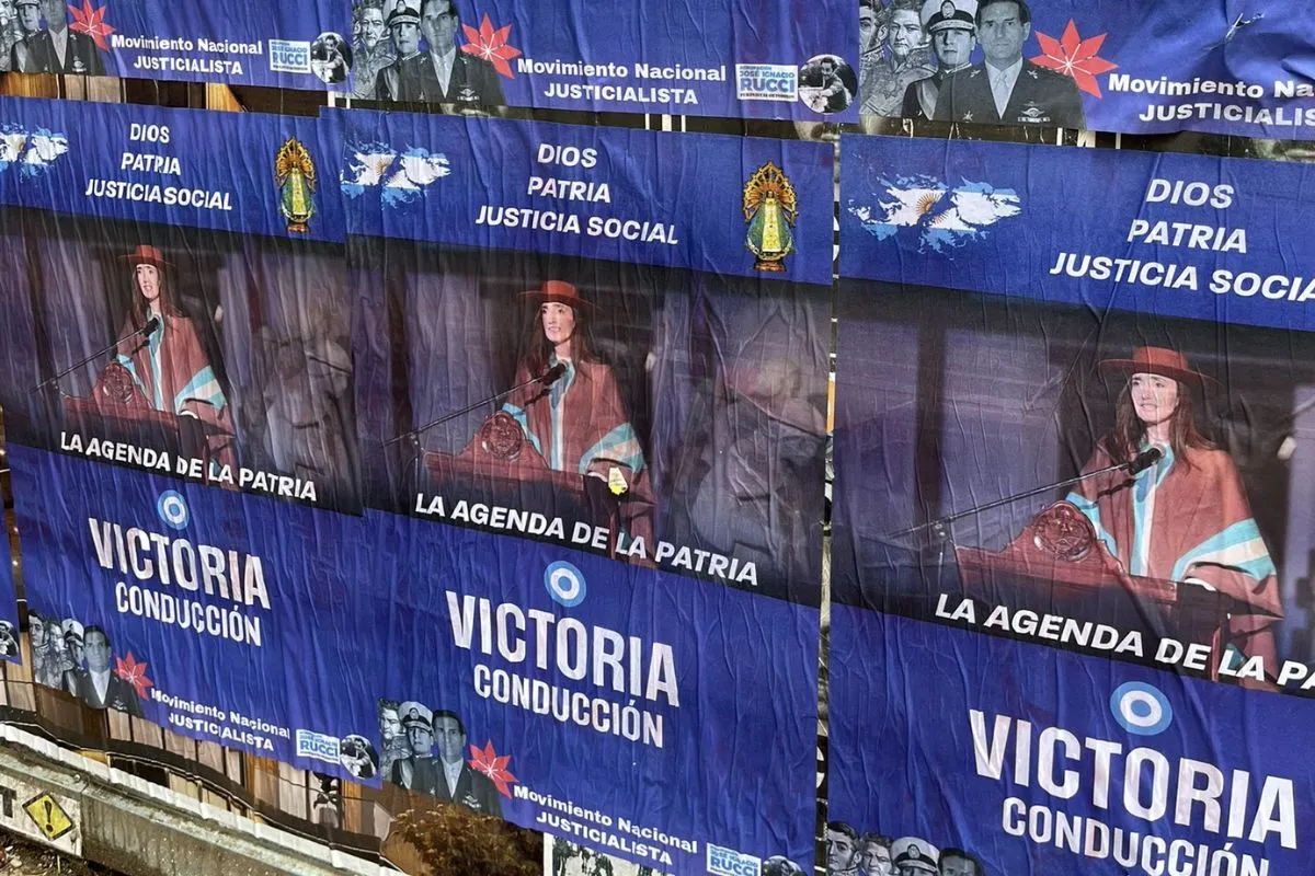 Los afiches en cuestión tienen la foto de la vicepresidente, la leyenda “Dios, Patria, Justicia Social. La agenda de la Patria”. Arriba las Islas Malvinas pintadas de celeste y blanco, la Virgen de Luján, una escarapela y, en el centro y con letras de grandes dimensiones “Victoria Conducción”. La firma es del Movimiento Nacional Justicialista y una agrupación identificada como José Ignacio Rucci. La clave: aparecieron alrededor del Congreso de la Nación.