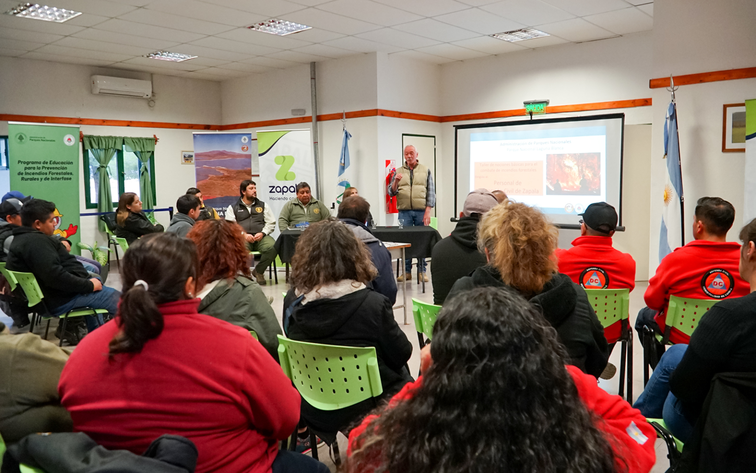 Gracias a gestiones conjuntas, se logró establecer un trabajo articulado con el Parque Nacional Laguna Blanca, cuyos especialistas fueron los encargados de brindar el primer ciclo de capacitación, del cual también participó personal de la Secretaría de Ambiente del Municipio. Esa formación inicial, realizada hace aproximadamente un año y medio, fue clave para que la brigada zapalina pudiera asistir por primera vez como apoyo en un incendio registrado en cercanías de Laguna Miranda durante 2024, marcando un hito en la región.