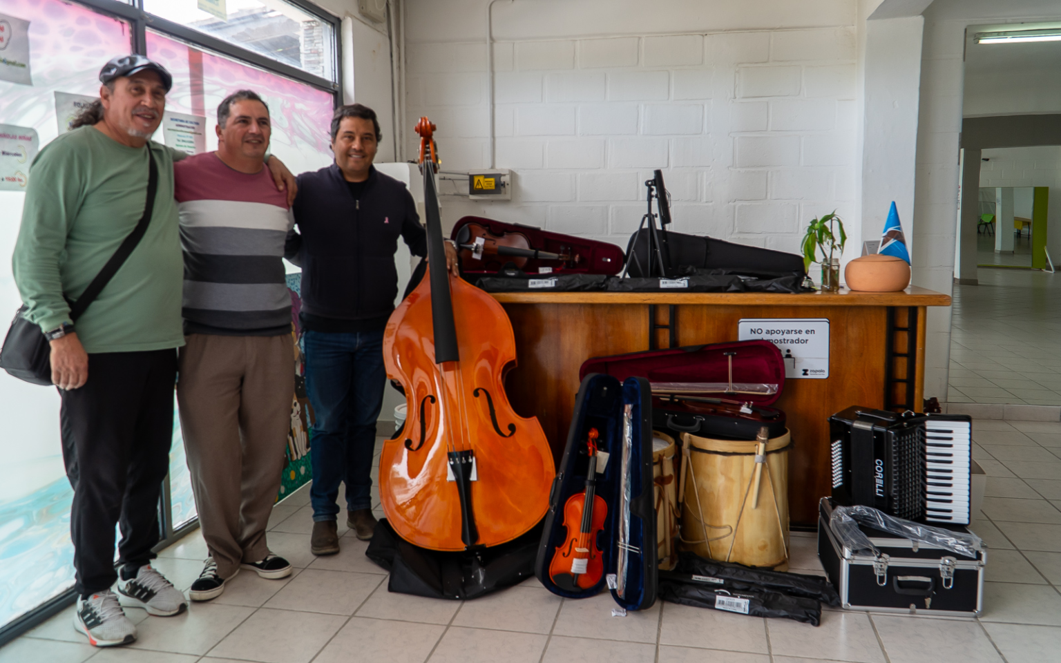 Esto fue posible gracias a la donación que el IJAN (Instituto de Juegos de Azar de Neuquén) realizó la semana pasada en presencia del intendente local. Allí, y en el marco del programa de asistencia a la comunidad, se entregaron dos violines de 3/4, dos violines de 4/4, un contrabajo 3/4, dos bombos, un acordeón, diez atriles y cuatro resinas para violin, entre otros elementos.
