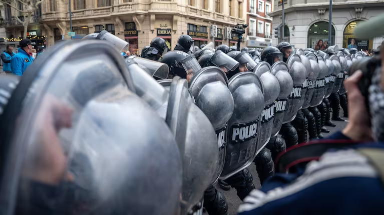 Pese a que la policía aplicó el protocolo antipiquetes para impedir que los manifestantes no interrumpieran el tránsito, la avenida Rivadavia ya estaba cortada en su totalidad minutos después de las 16. Ante eso, un camión hidrante y policía motorizada llegaron al lugar para sumarse al megaoperativo.