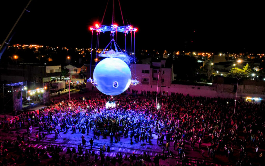 Grandes y chicos disfrutaron del espectáculo que tuvo epicentro en el Paseo La Estación, con miles de miradas que apuntaron al cielo para observar por una hora todo lo que acontecía a más de 50 metros de altura.