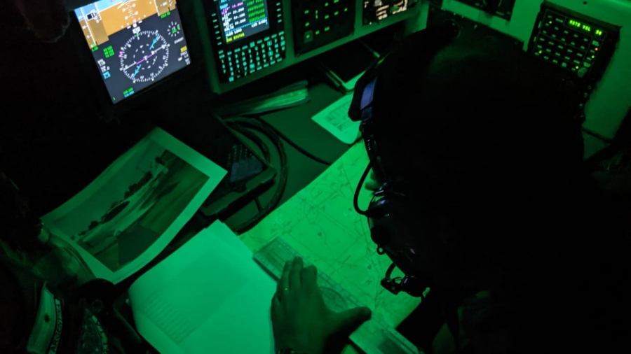 El avión Hércules partió desde Comodoro Rivadavia hacia la zona de rastrillaje, cerca de Bahía Bustamante y Pico Salamanca en el sur chubutese .