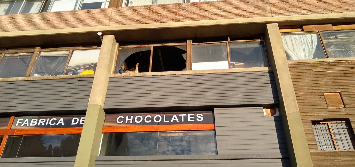 Hay locales con vidrios destruidos y maderas del interior calcinadas. También en el primer piso algunos comercios tienen ventanas dañadas.