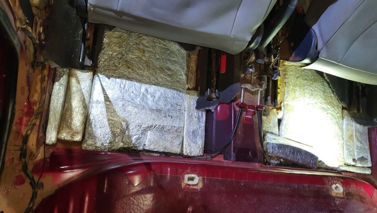 Al momento de realizar la inspección del vehículo, los uniformados encontraron a lo largo de todo el auto, debajo de la alfombra, paquetes de diferentes tamaños, envainados y envueltos en papel aluminio. En su interior, luego constataron, había una sustancia vegetal amarronada, la cual, tras ser sometida a las pruebas de campo conocida como narcotest, estas arrojaron resultado positivo para cannabis sativa (marihauna) con un peso total de 28 kilos 961 gramos, casi 29 kg.