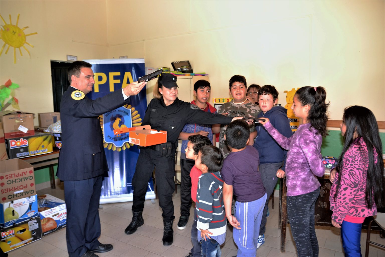 La relación entre la escuela y la institución policial es estrecha durante todo el ciclo lectivo pese a la distancia que los separa, ya que la misma es apadrinada por la dependencia policial y el aporte brindado por ésta es siempre bien recibido por los integrantes de esa comunidad. Según trascendidos la presente visita se hallaba postergada, dadas las malas condiciones climaticas, el deterioro de los accesos y una obra edilicia que se llevo acabo en el lugar, por lo que desde el mes de Junio no se dictaban clases.