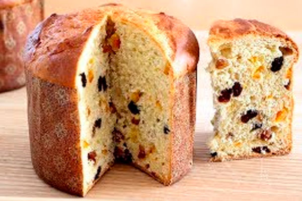 El amasado requiere paciencia: unos 15 minutos hasta obtener una masa suave y elástica. Tras el reposo, llega el momento de incorporar el relleno: pasas de uva, nueces, almendras, fruta abrillantada y hasta quinotos en almíbar, que le dan un toque especial. Finalmente, se coloca en moldes, se deja levar y se hornea hasta que la superficie esté dorada.