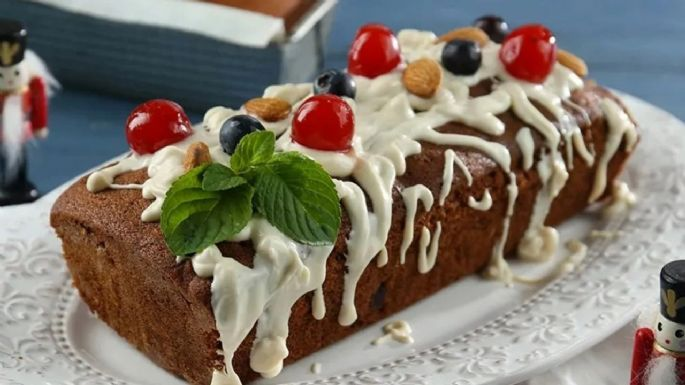 Cubre el budín con el glaseado y decora con frutas secas enteras o confitadas. Deja secar antes de servir.