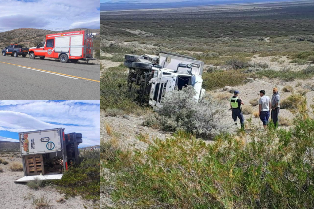 Esta tarde, un camión proveedor protagonizó un vuelco sobre la Ruta Nacional N°40, a la altura de Chorriaca.