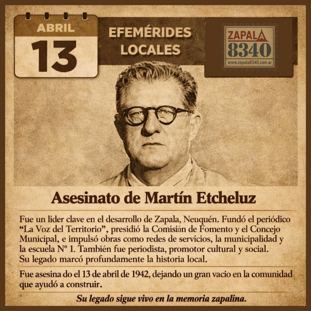 La muerte de Martín Etcheluz en 1942 expuso la violencia política en Zapala, donde las disputas de poder entre facciones rivales terminaron en un crimen que aún resuena en la historia neuquina.
